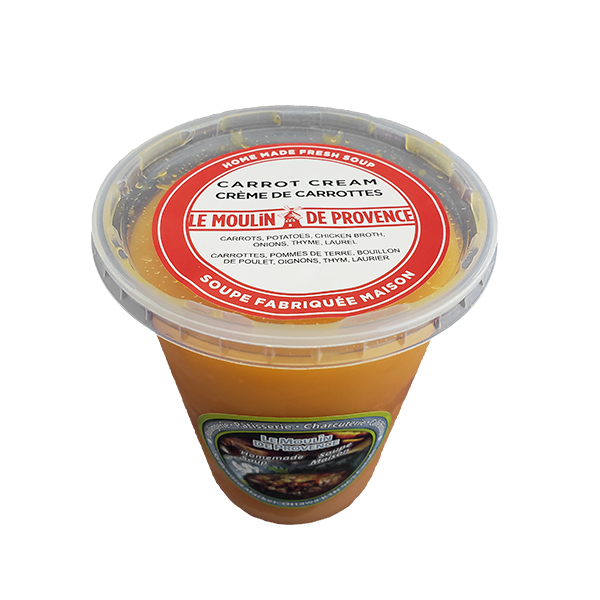 Cream of Carrot - carrots, leeks, potatoes, butter, onion, thyme, Laurier, chicken broth, cream